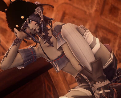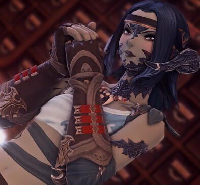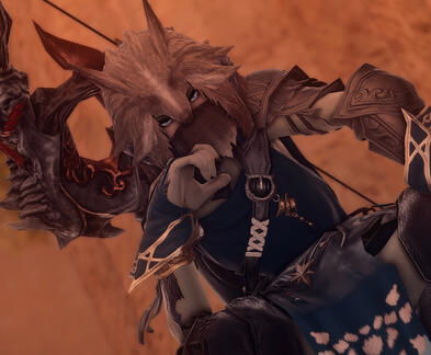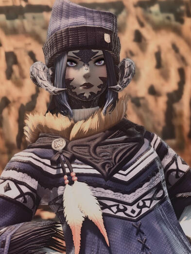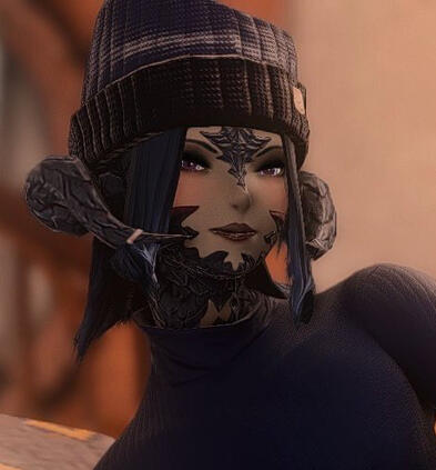 Chuluun's looks may deceive some into thinking otherwise, but he is a man. Incredibly short compared to the typical male Au Ra. He wears his navy blue hair in a shoulder-length cut, which appears to be kempt to some degree. He has a fairly smooth complexion, slick scales; nicely rounded out with shining violet eyes with light blue limbal rings. He's built well compared to his kin, and strewn about his body are a few scars fitting of a Xaela. He is often donning a hat of some sort and generally loose, and occasionally feminine clothing. When geared for a hunt or combat, he is often wearing a loose yet firmly made tunic, reinforced by pelts and bone. Whatever he's armed with depends on what he's setting out to accomplish.